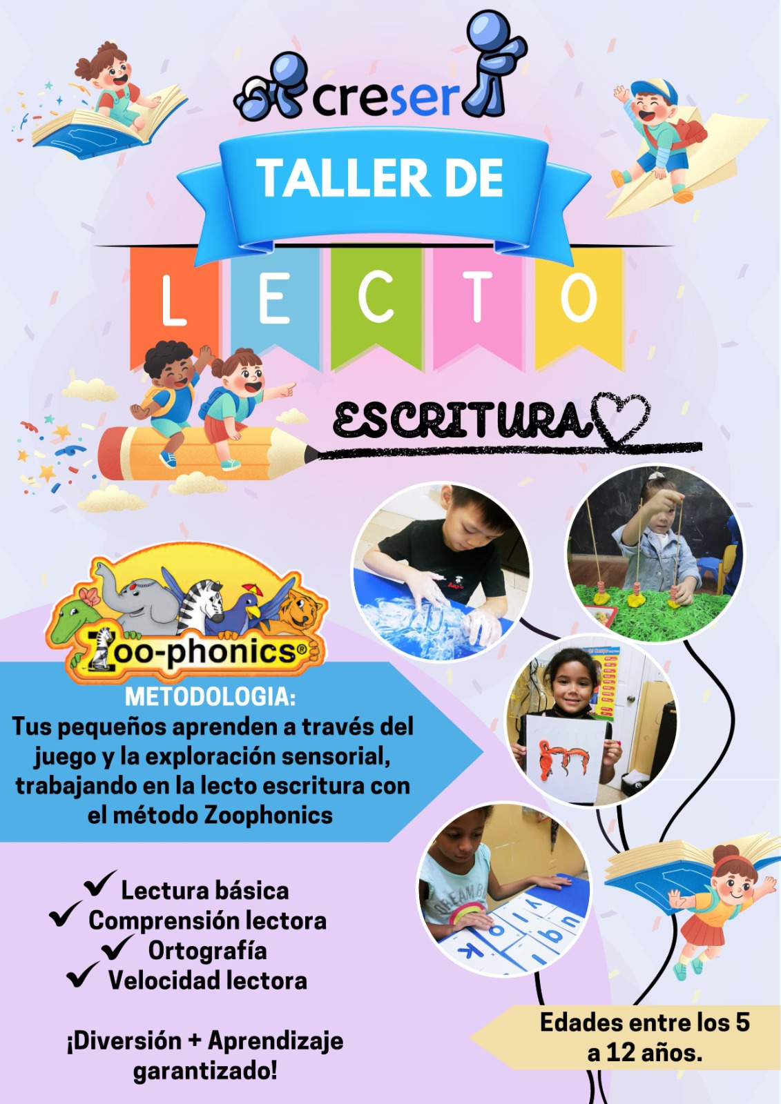 En la Clínica CreSer, sabemos que el mundo se abre con la habilidad de leer y escribir. Si buscas un taller de lectoescritura en Panamá que sea tan efectivo como divertido, nuestro programa, basado en el método Zoo-phonics, es la solución. Este taller está diseñado para niños de 5 a 12 años, convirtiendo el aprendizaje en una aventura sensorial y lúdica.