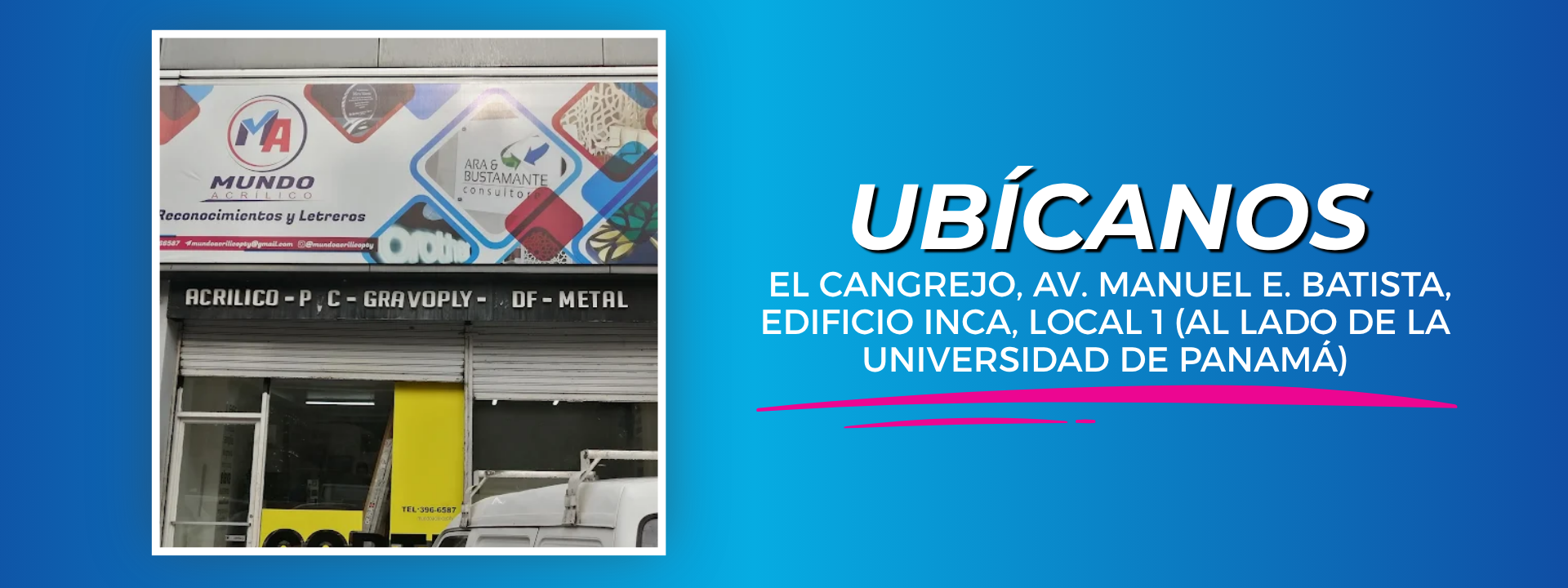 Dirección: El Cangrejo, Av. Manuel E. Batista, Edificio Inca, Local 1 (al lado de la Universidad de Panamá).